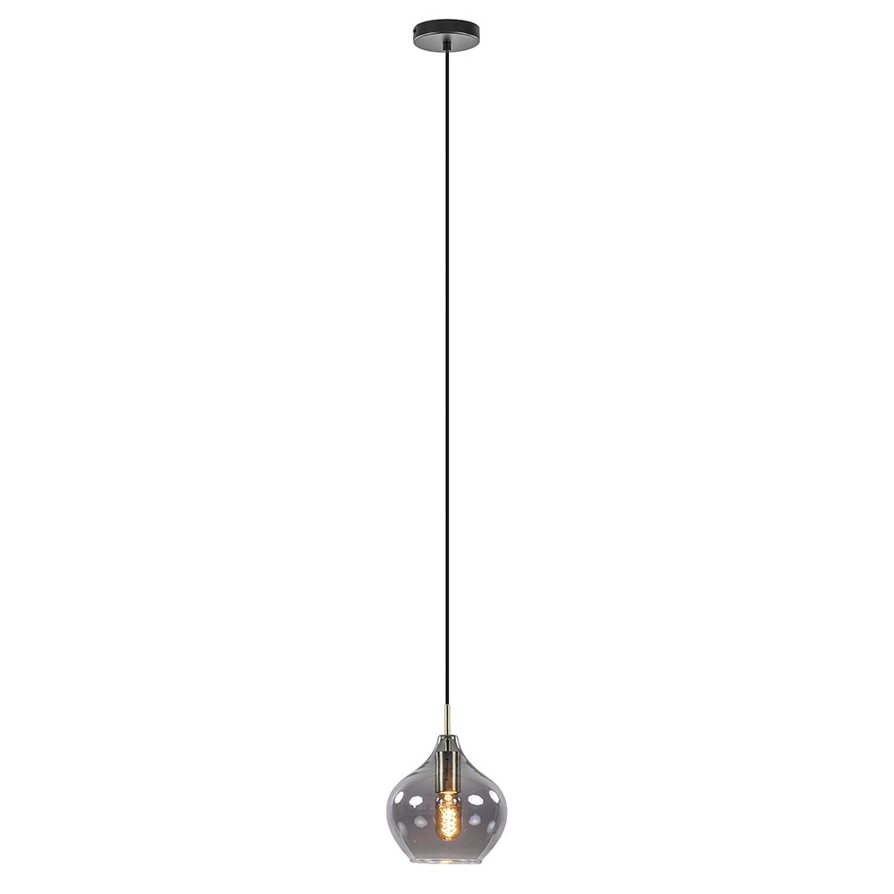 – hoogte: 150 cm – kap: Ø20×21 cm – bevestiging: Ø12×2,5 cm – smoke glas – metaal, mat zwart / antiek brass – exclusief lichtbron (E27) – dimbaar (exclusief)