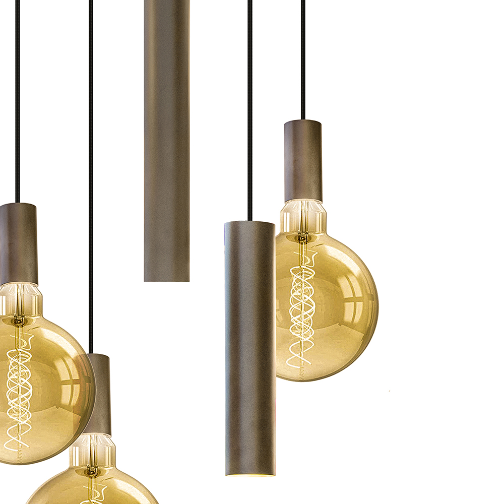 – hoogte: 125 cm – bevestiging: Ø47×3 cm (afdekplaat Ø50 cm) – diverse afmetingen cilinders – E27 fittingen – metaal, platinum – in hoogte verstelbaar – exclusief lichtbronnen (3x E27 + 2x GU10) – dimbaar (exclusief)