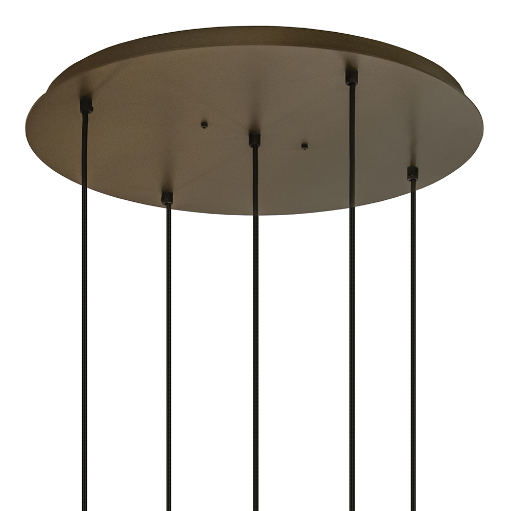 Een prachtige toevoeging voor een eetkamer of woonkamer. Deze ronde 5-lichts hanglamp is gemaakt van metaal en uitgevoerd in de kleur platinum. De hanglamp bestaat uit een grote ronde plafondplaat van 50 cm doorsnede waar 5 lichtpunten over zijn verdeeld. 3 lichtpunten hebben een pendel met E27 fitting en 2 hebben een cilinder met een GU10 fitting. Dit zorgt ervoor dat zowel de ruimte als het oppervlak onder de lamp goed wordt verlicht. De lamp heeft een hoogte van 125 cm en is naar wens te verdelen. De luxe hanglamp wordt geleverd exclusief lichtbronnen.