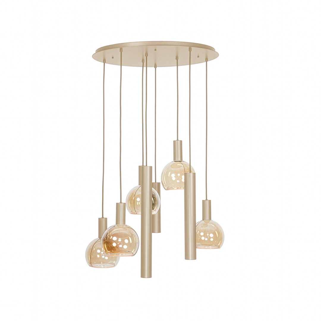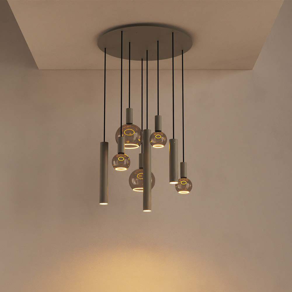 De Riva van Ztahl is een van de meest populaire modellen binnen de collectie — een moderne eyecatcher die direct de aandacht trekt boven je eettafel of kookeiland. Deze 8-lichts hanglamp combineert een verfijnde ronde vorm met strak vormgegeven cilinders, wat zorgt voor een evenwichtige en grafische uitstraling.