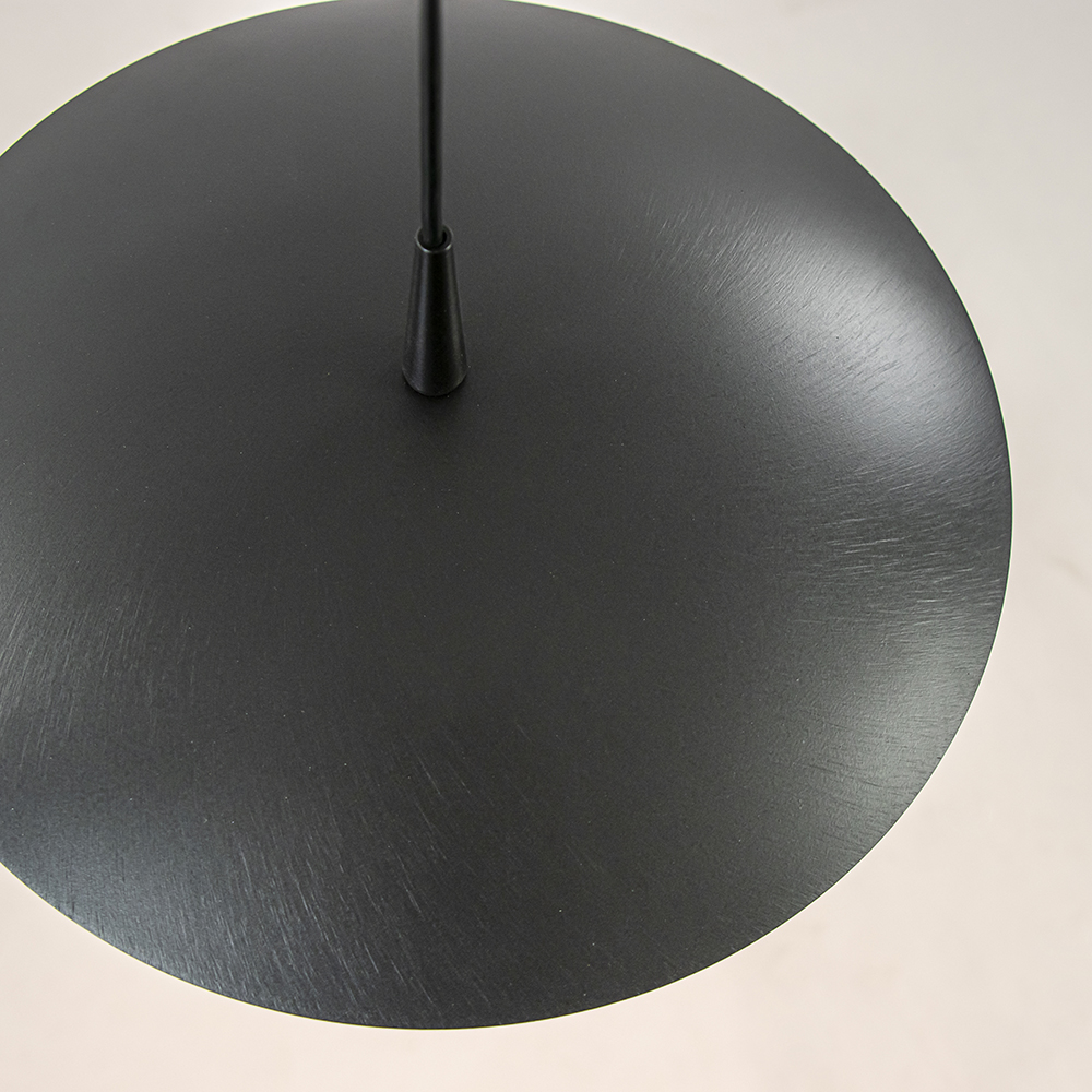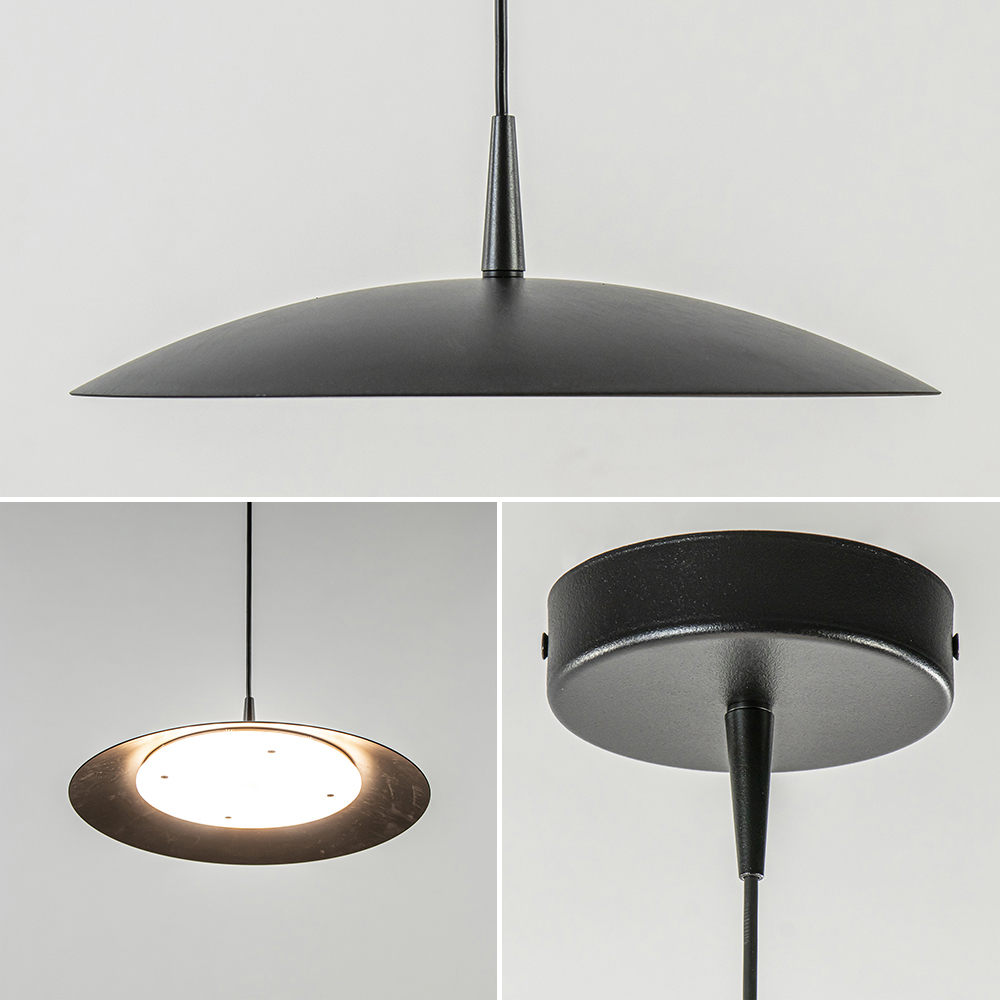 – afm: Ø25×180 cm – bevestiging: Ø10,5×3 cm – kap: Ø25×8 cm – metaal – zwart nikkel – geïntegreerd LED – 960 lumen – 2700-2200 kelvin – dim to warm (exclusief) – in hoogte verstelbaar