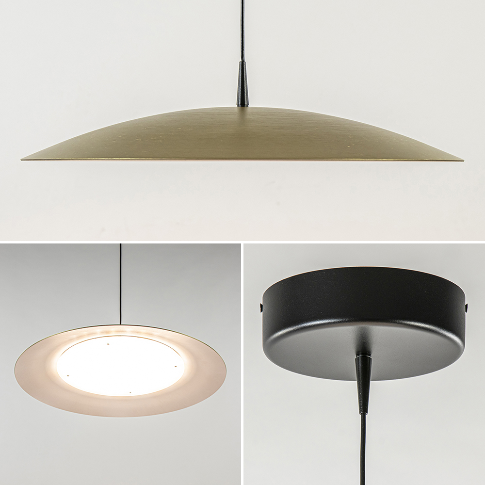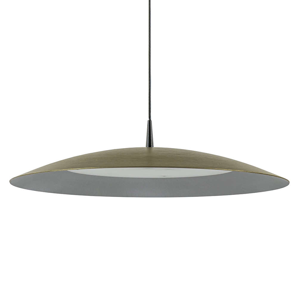 Minimalistisch van design maar sfeervol in effect. Deze moderne hanglamp heeft een koepel van 45 cm doorsnede die is uitgevoerd in het goud. De kap is voorzien van geïntegreerd LED met een dim to warm functie. Met de juiste dimmer (exclusief) kunt u de lamp dimmen en veranderd deze van kleurtemperatuur tussen de 2700 en 2200 Kelvin. De ronde lamp heeft een maximale hoogte van 180 cm en is naar wens in te korten.