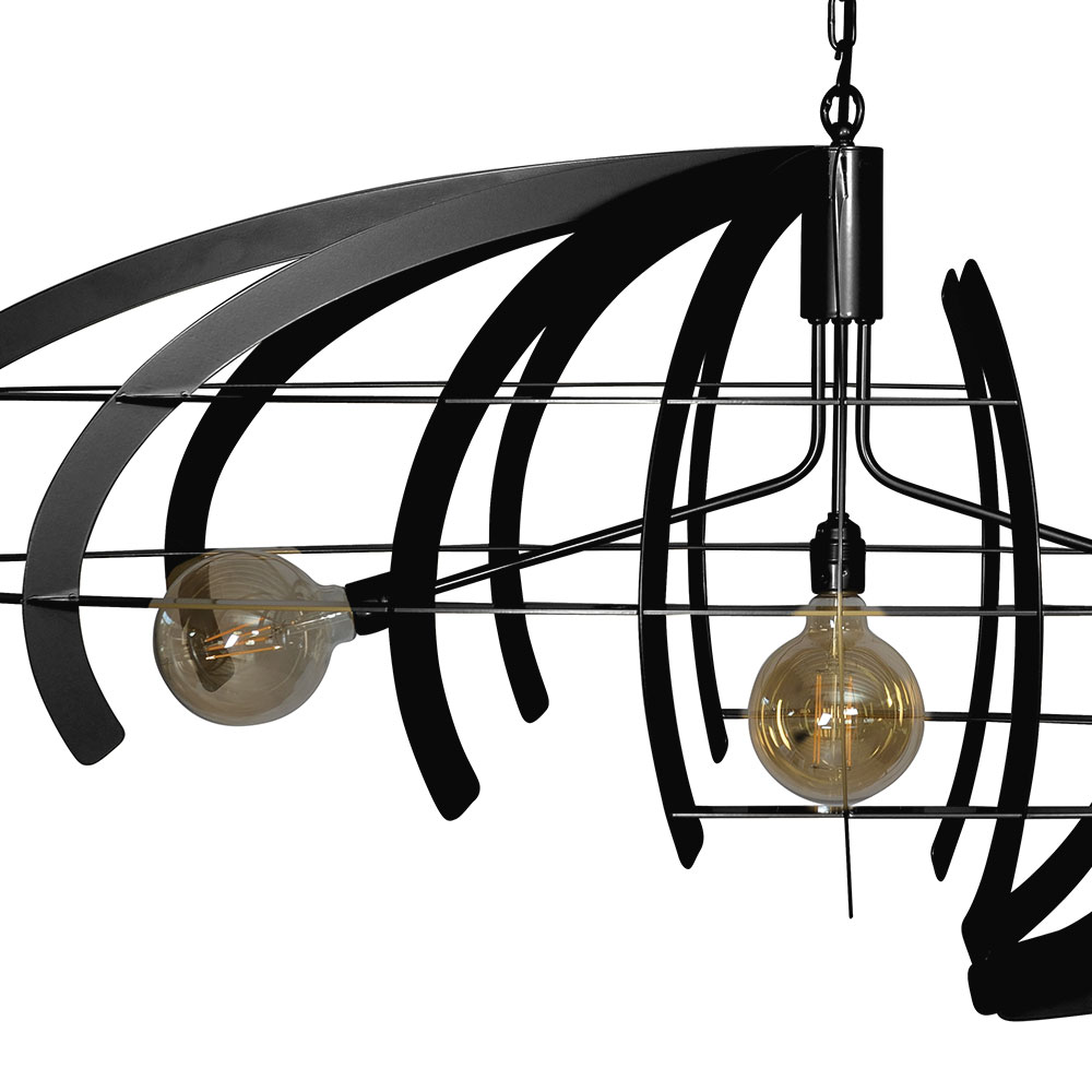 Een prachtige exemplaar is deze grote hanglamp. De hanglamp is ovaal en staat daarmee prachtig boven een grote ovalen eettafel. De lamp is opgebouwd uit platte ribben. Aan twee zijdes is een cirkelvormige uitsnede gemaakt. Dit zorgt voor zowel een speels effect als balans in de lamp, een spannende combinatie! De hanglamp is gemaakt van metaal en afgewerkt met een zwarte poedercoating. De ovale eettafellamp hangt aan een stevige ketting en is naar wens in te korten.