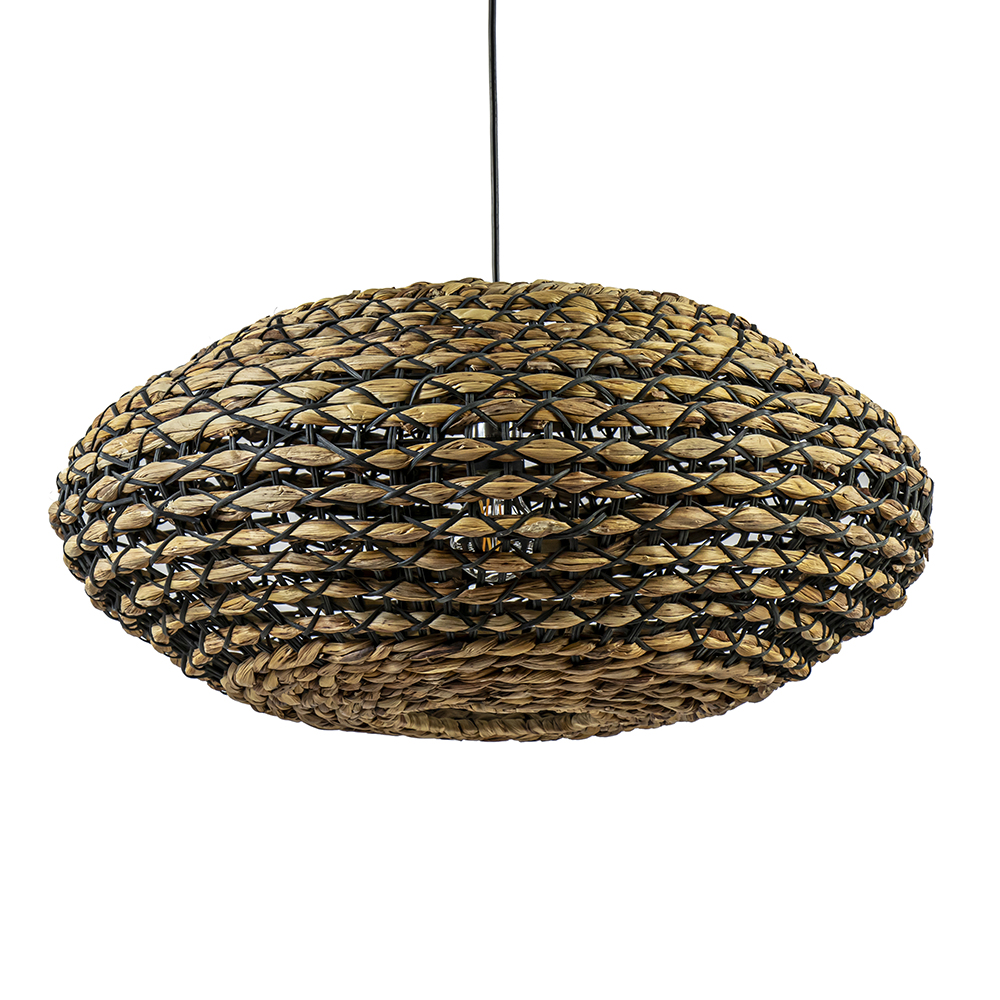 – afm: Ø60×185 cm – kap: Ø60×29,5 cm – bevestiging: Ø12×2,5 cm – metaal, mat zwart – rotan, naturel/zwart – in hoogte verstelbaar – exclusief lichtbron (E27) – dimbaar (exclusief)