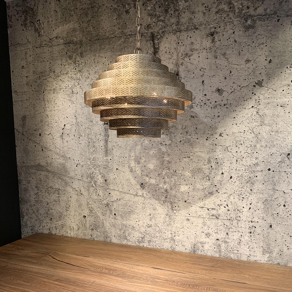 Homepagina / Lampen / Eettafellampen / Hanglamp Vegas rond ambachtelijk zilver 55cm