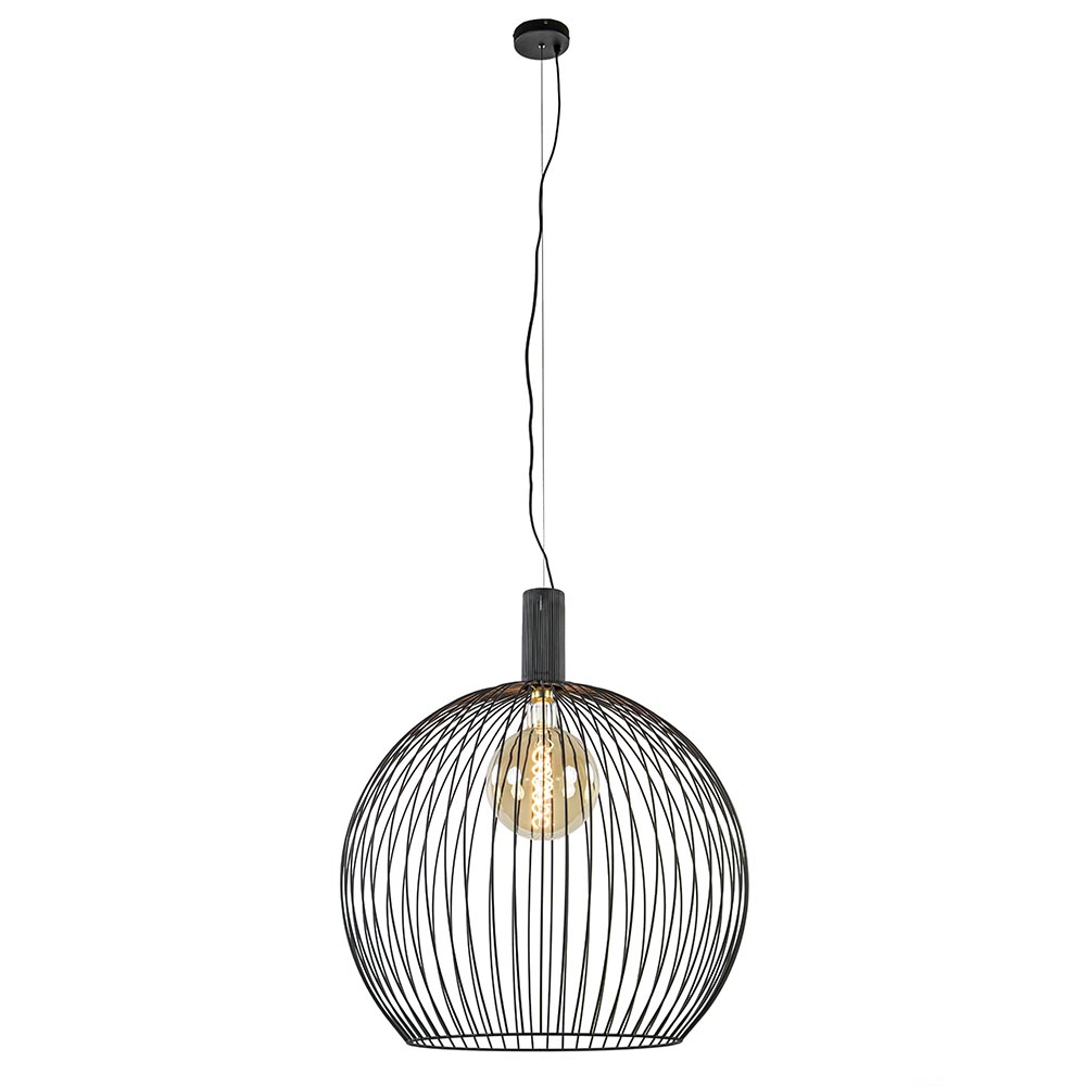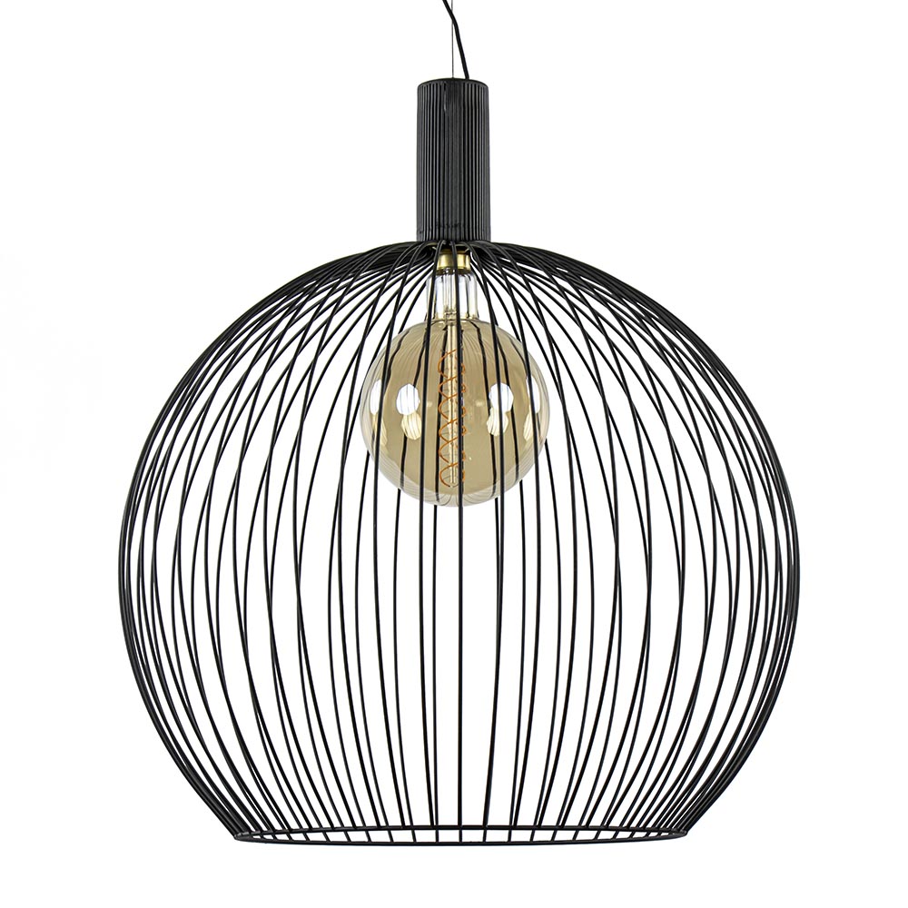 Deze grote bolvormige hanglamp is een mooie toevoeging voor een landelijk, industrieel of Scandinavisch interieur. De draadlamp is gemaakt van mat zwart metaal. De bol hangt aan een zwart snoer begeleid met een ijzerdraad voor stevigheid. Mocht de hanglamp te hoog zijn, zijn het snoer en de kabel gemakkelijk in te nemen. Deze hanglamp past mooi in de woonkamer, eetkamer of slaapkamer. Door de open constructie van de hanglamp bepaald de lichtbron veelal de sfeer. Eén van onze 3-standen lichtbronnen zou dan ook een mooie keus zijn om deze hanglamp mee af te maken. Of kies voor de kleine spot Pucc (art: 05320014) waardoor de aandacht volledig naar de lamp gaat.