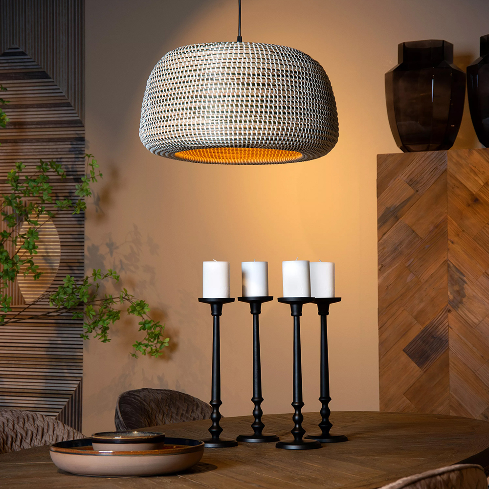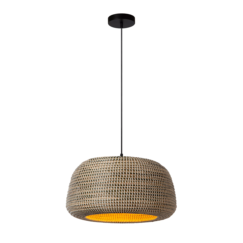Deze sfeervolle hanglamp is de perfecte aanvulling op een warm interieur en goed te combineren in woonkamer, eetkamer, hal of slaapkamer. De ronde kap is gemaakt van zeegras in een bruine kleur en heeft een doorsnede van 47 cm. De kap hangt aan een zwart snoer die naar wens in hoogte verstelbaar is tot 127cm. De zeegras hanglamp wordt bevestigd met een ronde plaat van 12 cm doorsnede. De zeegras lamp wordt geleverd zonder lichtbron en is dimbaar middels een externe dimmer (exclusief).