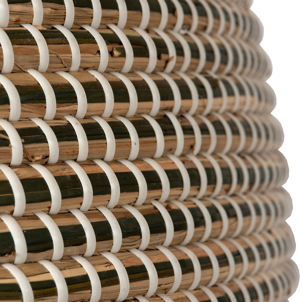 – Hoogte: 127,5 cm – Kap: Ø 47×25 cm – Bevestiging: Ø 12x3cm – Materiaal: Zeegras – Kleur: bruin, zwart – Exclusief lichtbron (E27) – In hoogte verstelbaar