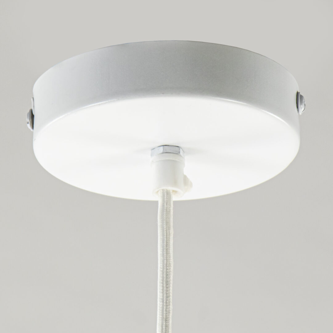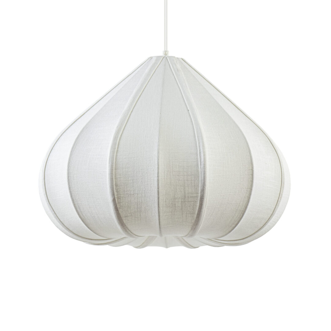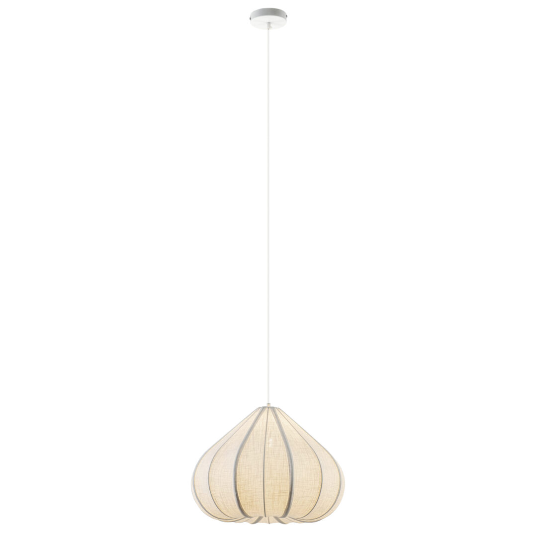 – afm: Ø49×170 cm – kap: Ø49×36 cm – bevestiging: Ø11×2,5 cm – stof, crème – metaal, wit – in hoogte verstelbaar – exclusief lichtbron – dimbaar (exclusief)