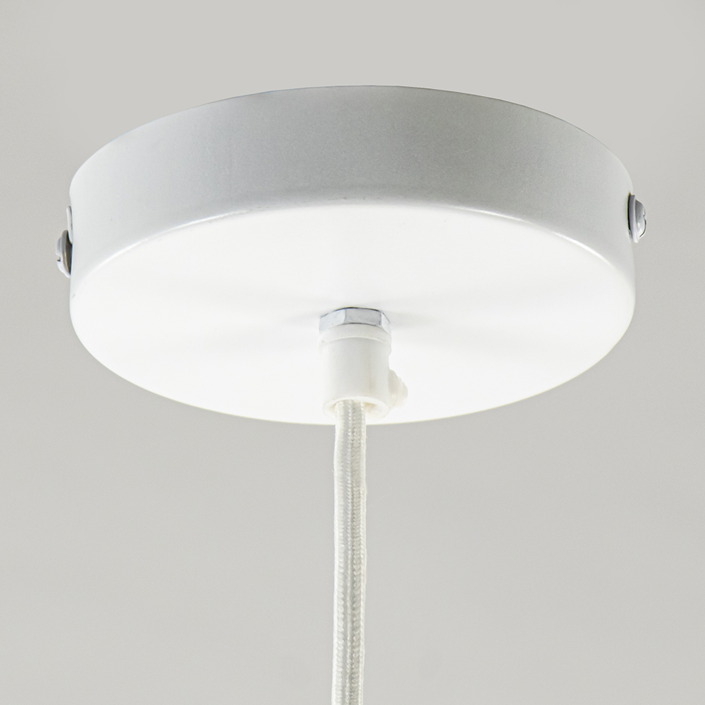 – afm: Ø58,5×175 cm – kap: Ø58,5×40 cm – bevestiging: Ø11×2,5 cm – stof, crème – metaal, wit – in hoogte verstelbaar – exclusief lichtbron – dimbaar (exclusief)