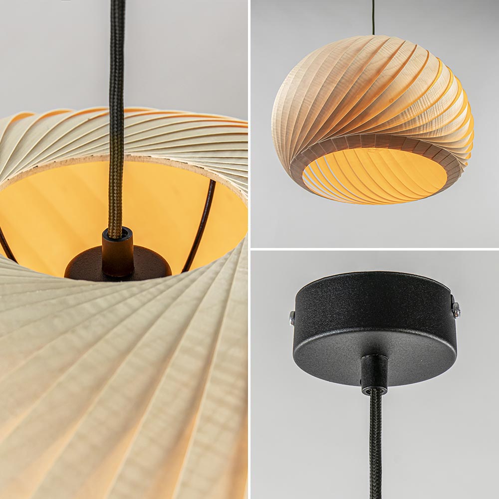 – afm: Ø35×225 cm – kap: Ø35×23 cm – bevestiging: Ø8×3 cm – metaal, mat zwart – hout, naturel – zwart snoer – exclusief lichtbron (E27) – dimbaar (exclusief)