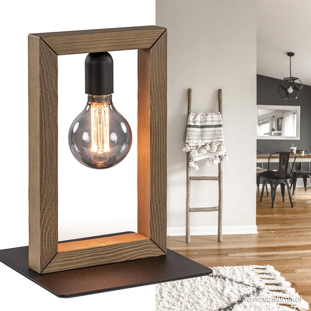 Homepagina / Lampen / Tafellampen / Houten tafellamp frame met zwart