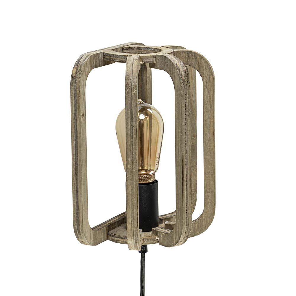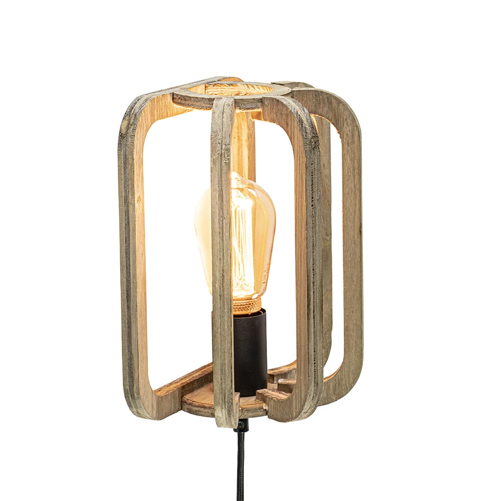 Homepagina / Lampen / Wandlampen / Houten wandlamp met zwarte fitting en snoer