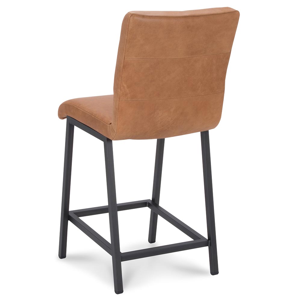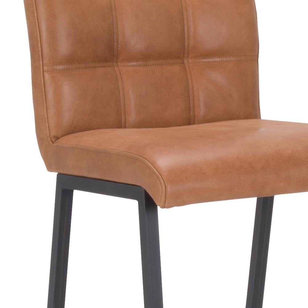 Een stoere barkruk met een fijne zitting. Perfect geschikt voor een industriële of landelijke setting. De barstoel heeft een hoog zitcomfort en heeft in de zwart metalen poten een extra voetensteun voor extra steun. De barstoel heeft een zachte lederen zitting die in de rug is afgewerkt met een stiksel. Het fijne aan de rugleuning is dat deze wat hoger is en zo veel steun geeft waardoor een avondje borrelen geen probleem is.