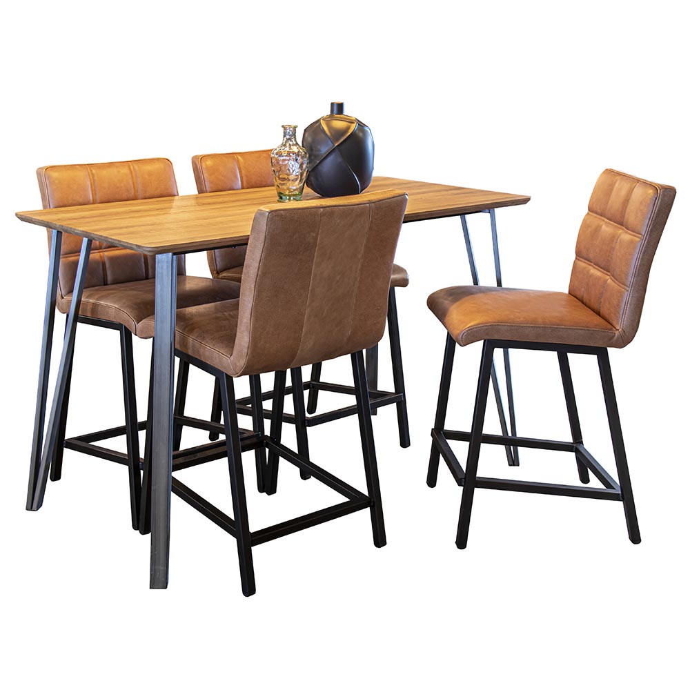 Homepagina / Wonen / Barkrukken / Industriële barkruk met cognac lederen zitting