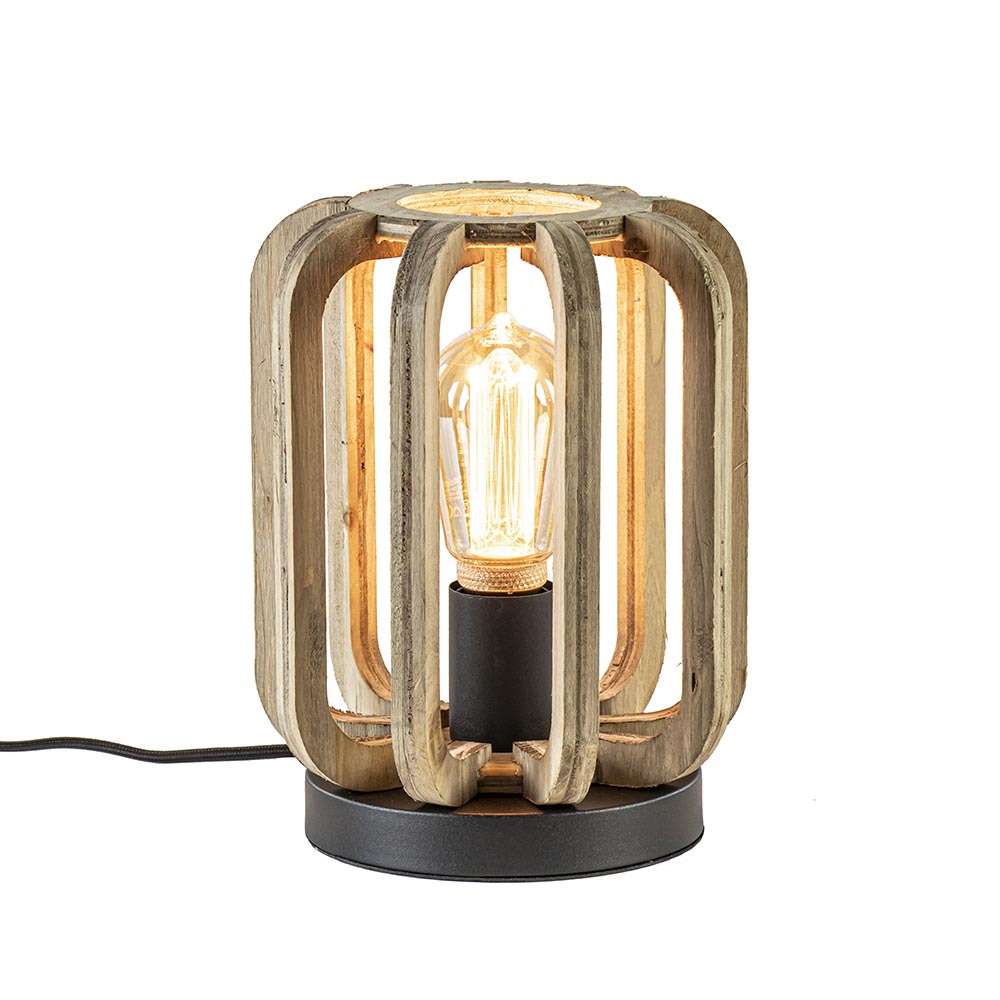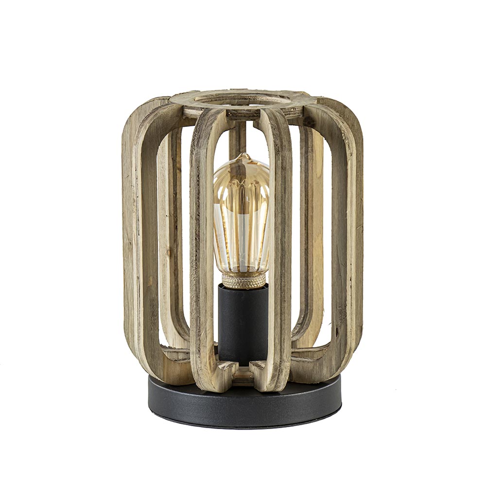Homepagina / Lampen / Tafellampen / Industriële tafellamp houten kooi met mat zwart