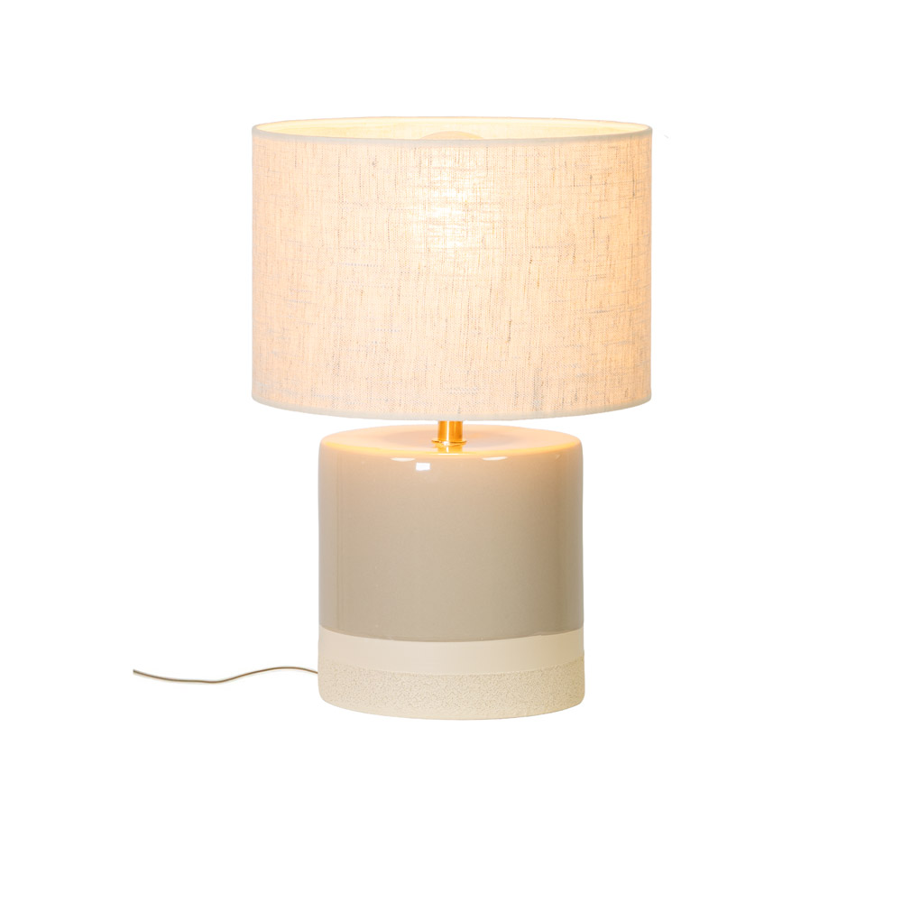 Homepagina / Lampen / Schemerlampen / Keramische tafellamp rond beige met stoffen kap