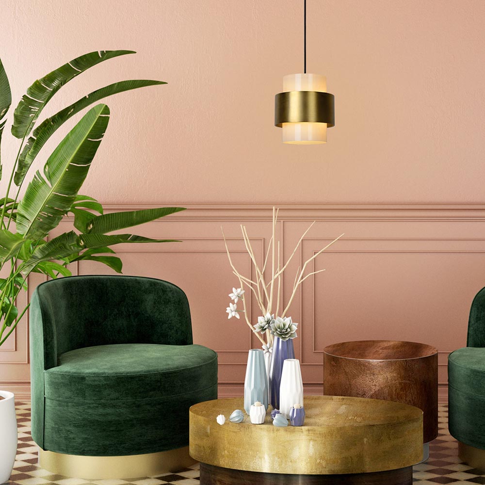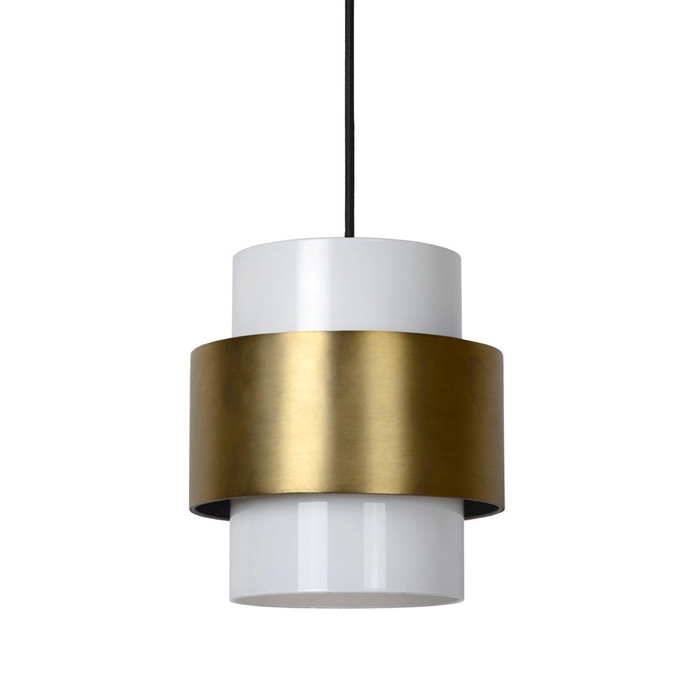 Klassiek met een retro tintje. Deze hanglamp is een verrijking voor het interieur. De hanglamp bestaat uit een cilinder vormige opaal glazen kap met daar omheen een metalen mat gouden ring. Het opale glas zorgt voor sfeervol diffuus licht en tevens dat u niet in de lichtbron kunt kijken. De ronde kap hangt aan een zwart stof omwonden snoer welke naar wens in hoogte is te verstellen. De hanglamp past mooi boven een ronde eettafel, salontafel of als extra sfeerlicht in de woonkamer. De klassieke hanglamp is dimbaar middels een externe dimmer (exclusief).