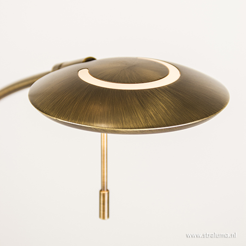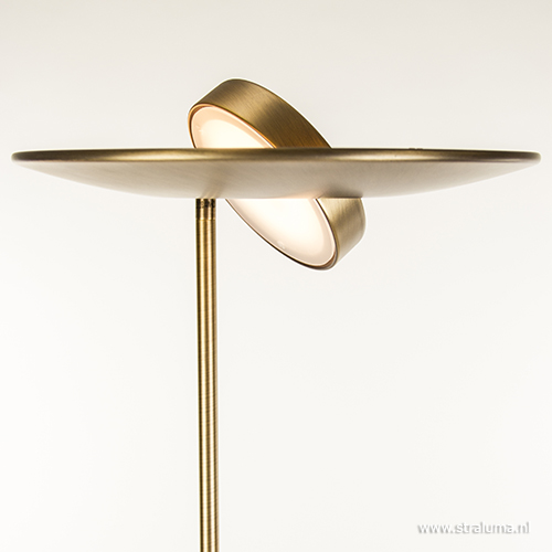 Deze klassieke vloerlamp in een bronzen kleur is een mooie toevoeging aan uw interieur. De staande lamp is voorzien van een uplighter en een leeslamp voor extra gemak. Voordeel van de uplighter is dat de middenspot zowel naar onder als naar boven kan schijnen. De spot is gemakkelijk te draaien naar een gewenste positie. Ook de schaal zelf is te kantelen voor de juiste manier van belichten. Het leeslampje is ook te verstellen en heeft als leuk extraatje een speels licht effect aan de bovenzijde. Deze klassieke vloerlamp is voorzien van een LED lichtbron en is in vier kleuren verkrijgbaar: brons, staal, messing en zwart.