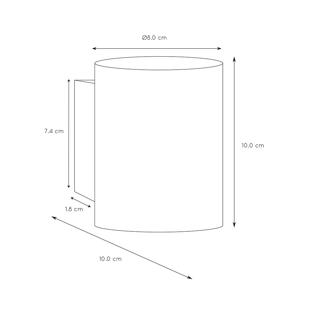 – Ø 8 cm, hoogte 10 cm – geleverd zonder lichtbron – geschikt voor LED, dus energiezuinig – deze wandlamp wordt zonder snoer geleverd