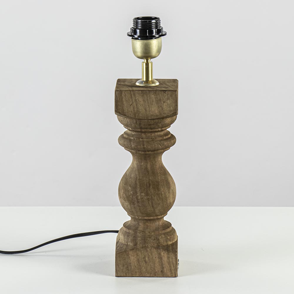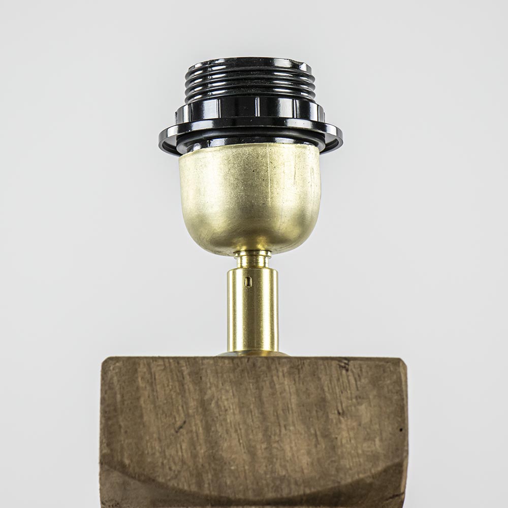– afm: 9x9x27 cm – E27 fitting – hout – metaal, brons – exclusief kap – exclusief lichtbron – zwart snoer: 160 cm