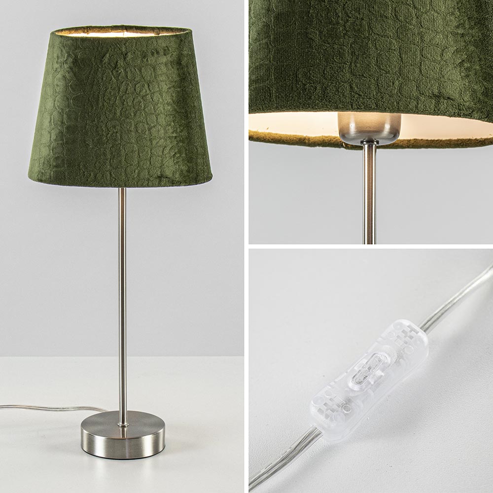 – hoogte: 34 cm – voet: Ø10×2,5 cm – nikkel – exclusief kap – exclusief lichtbron (E27) – transparant snoer: 150 cm, schakelaar op 30 cm