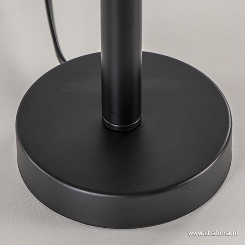 – hoogte van de lamp is 26 cm (exclusief kap) – voet heeft een afmeting van Ø12×2,5 cm – metaal, mat zwart – inclusief zwart snoer van 195 cm, schakelaar op 45 cm – exclusief kap – exclusief lichtbron (E27)