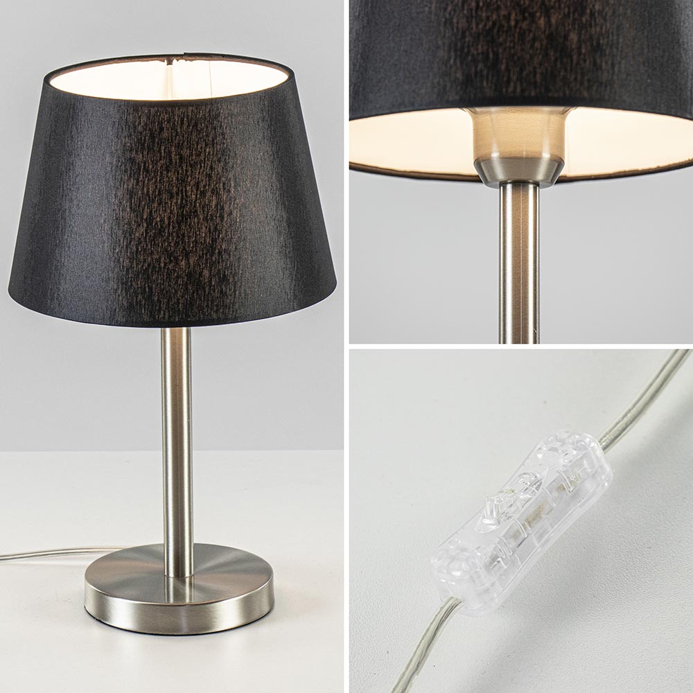 – hoogte: 25 cm – voet: Ø12×2 cm – nikkel – exclusief kap – exclusief lichtbron (E27) – transparant snoer met schakelaar: 170 cm, schakelaar op 45 cm