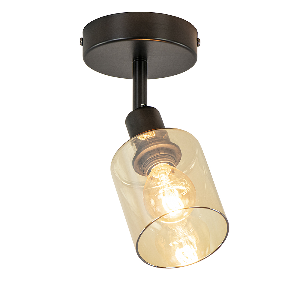 Homepagina / Lampen / Plafondlampen / Kleine plafondlamp zwart met amber glas