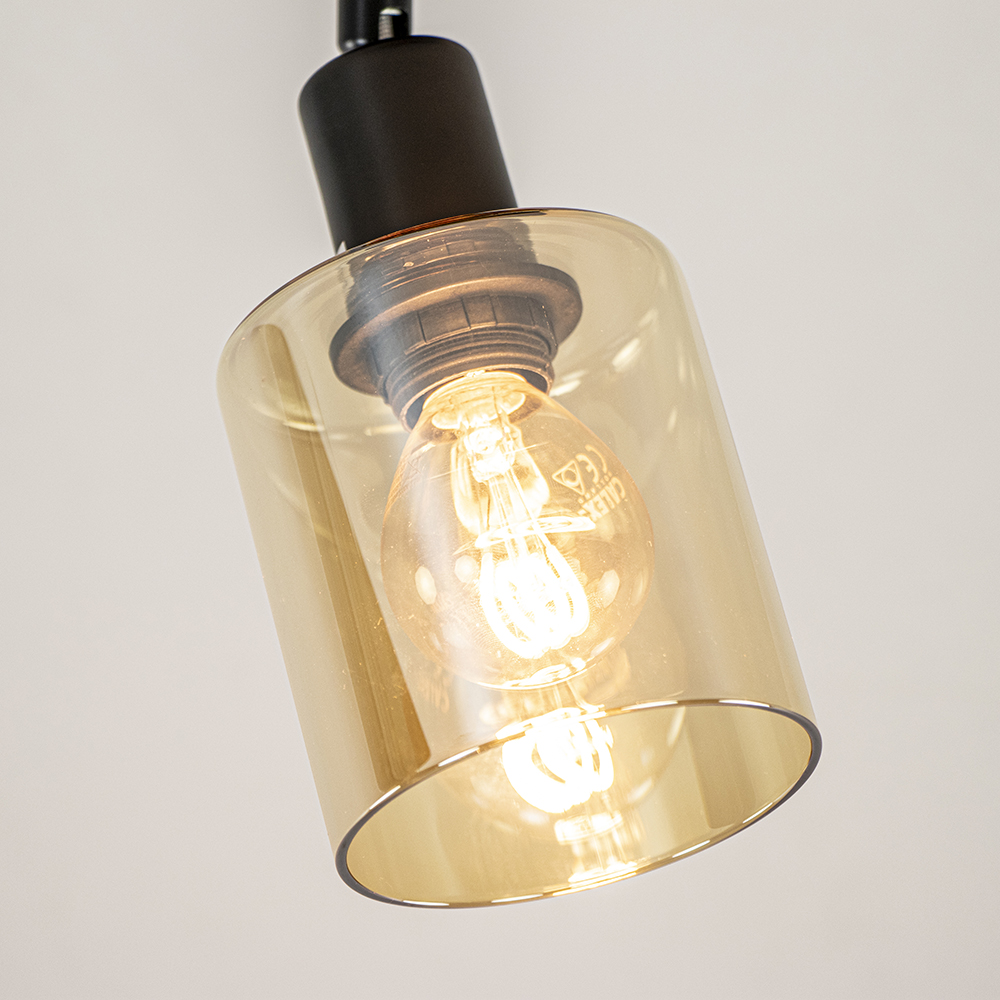 – afm: Ø10×22 cm – bevestiging: Ø10×2,5 cm – kap: Ø8×13,5 cm – metaal, mat zwart – amber glas – verstelbaar – exclusief lichtbron (E14) – dimbaar (exclusief)