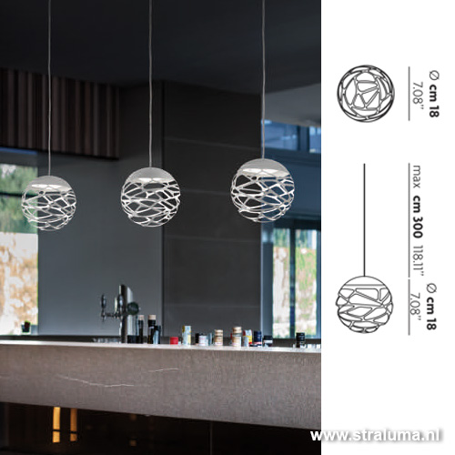 Deze kleine design hanglamp Kelly wit is fantastisch. Hoogstaand Italiaans design met een vrolijke speelse knipoog. Deze witte hanglamp is prachtig met meerdere exemplaren boven het werkblad in uw droomkeuken. De hangamp is voorzien van 3 meter transparant snoer. Dit geeft de hanglamp extra speling waardoor hij ook geschikt is voor een vide.