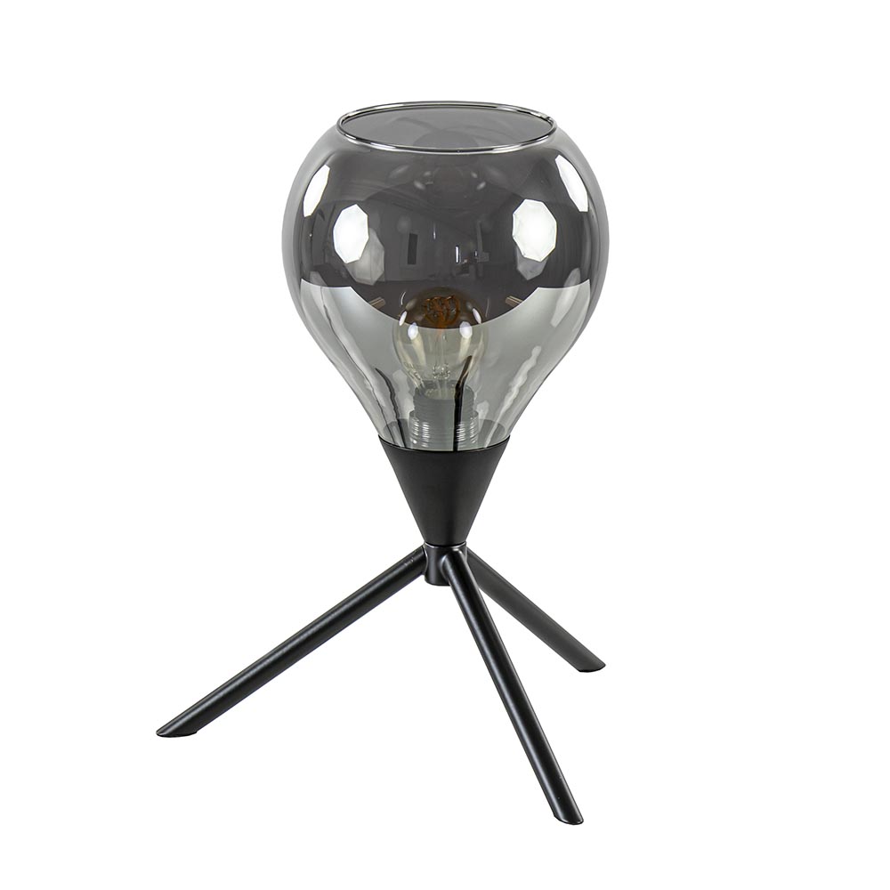 – hoogte: 29 cm – driepoot: Ø23×14,5 cm – kap: Ø15×14,5 cm – smoke/titanium glas – metaal, zwart – zwart snoer: 180 cm – exclusief lichtbron (E14)