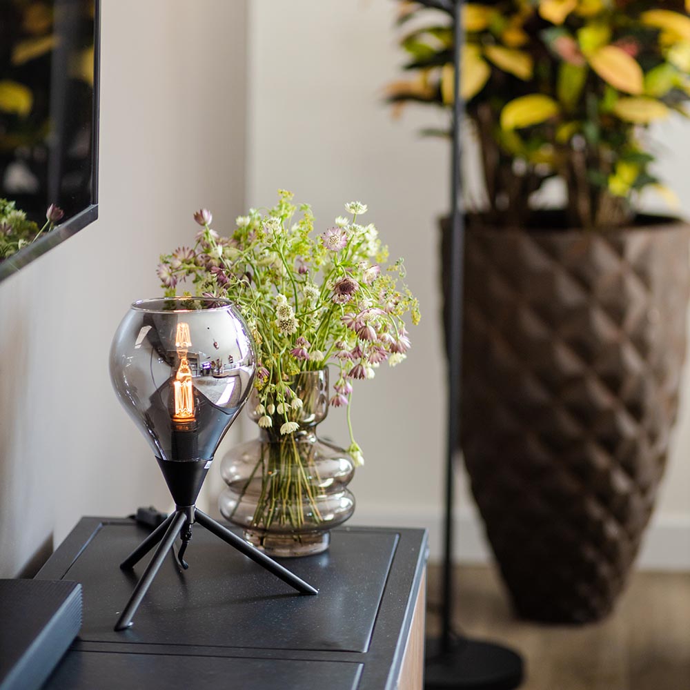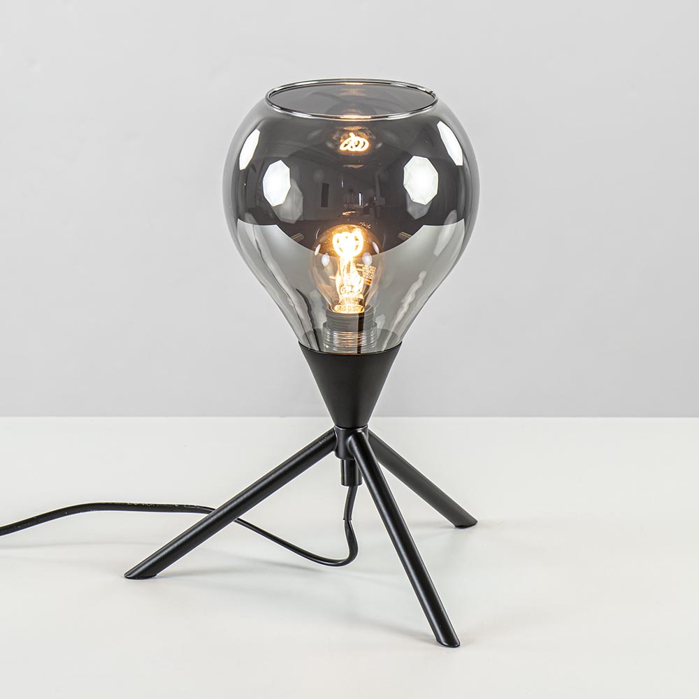 Homepagina / Lampen / Tafellampen / Kleine tafellamp driepoot met titanium glas