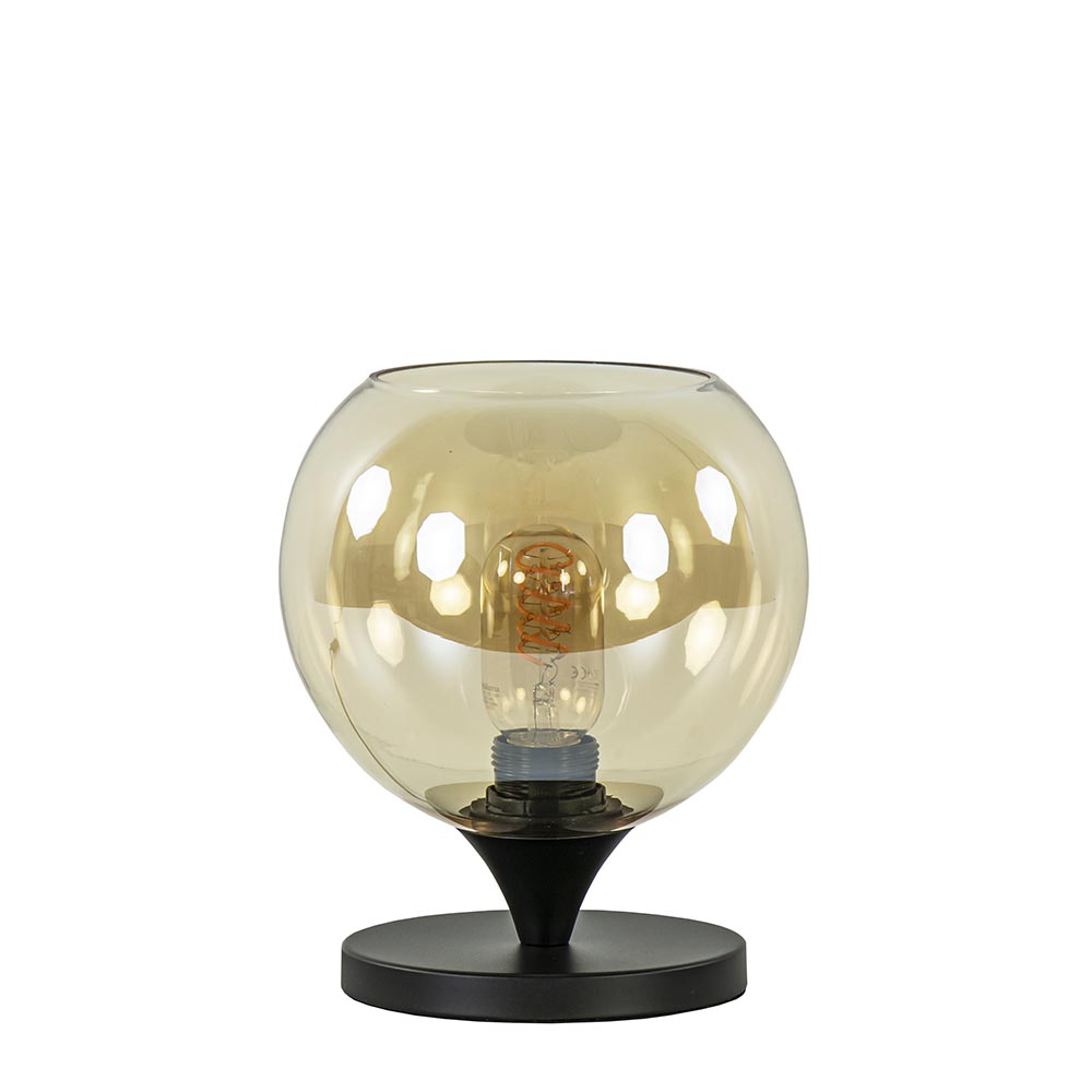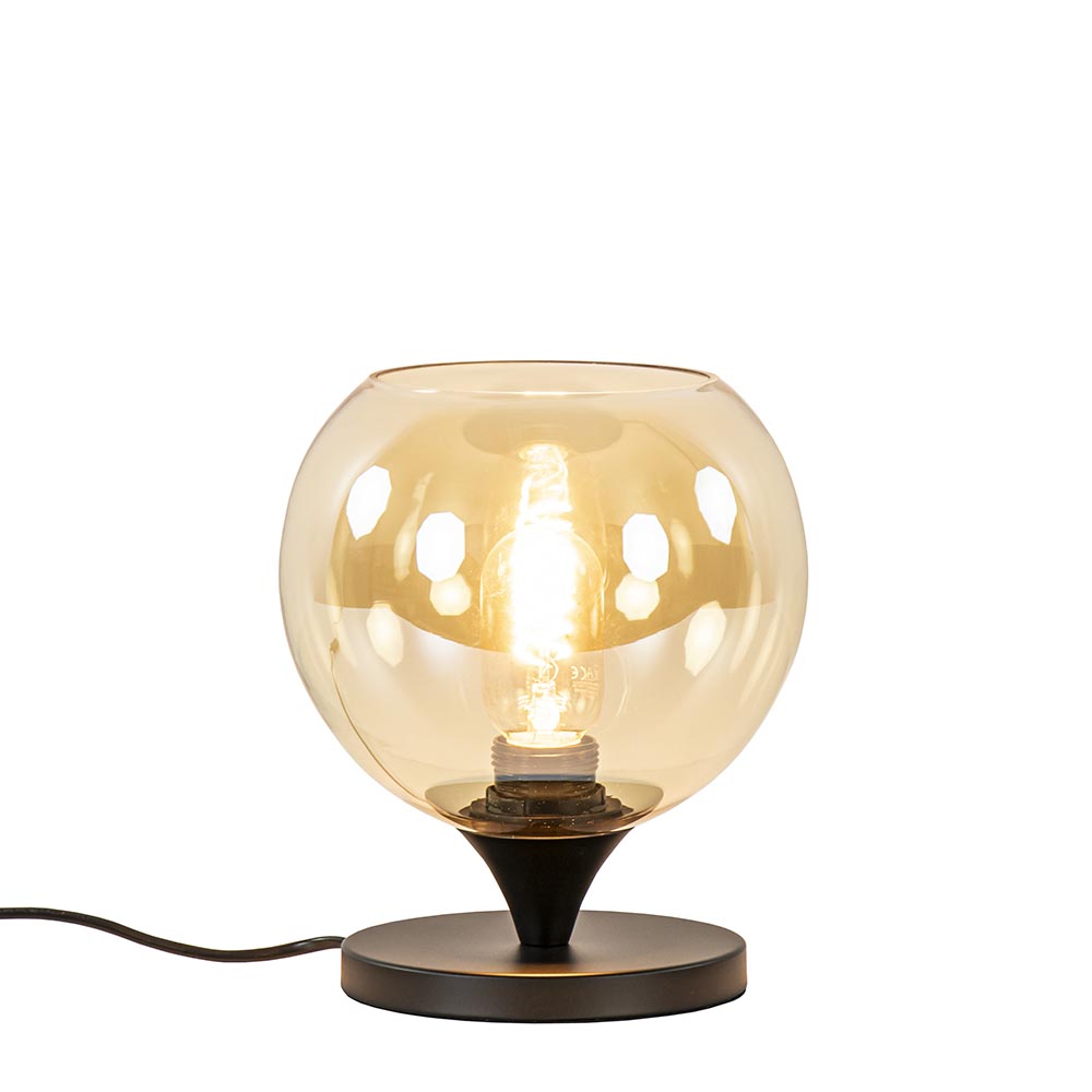 Homepagina / Lampen / Tafellampen / Kleine tafellamp zwart met amber glazen bol 20 cm