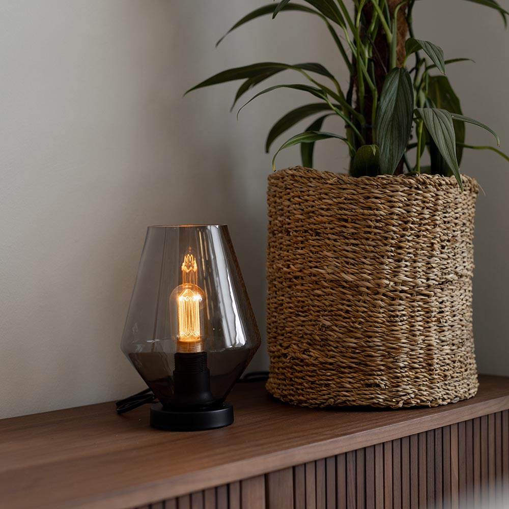 Homepagina / Lampen / Tafellampen / Kleine tafellamp zwart met smoke glas