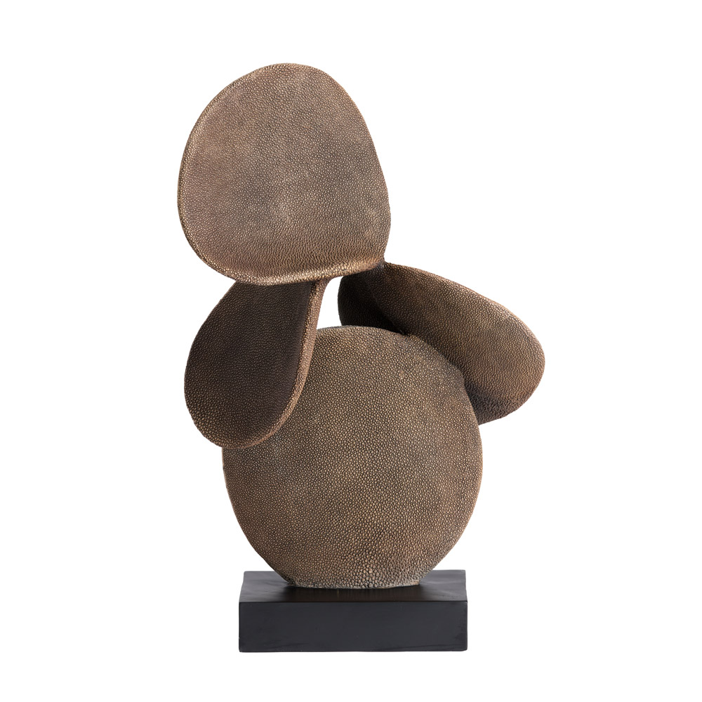 Het Axis decoratiebeeld is een echte blikvanger voor je interieur. De vloeiende, abstracte vormen in warme bruintinten geven het beeld een sculpturale en eigentijdse uitstraling. Dankzij de subtiele structuur in het oppervlak krijgt het geheel extra diepte en karakter. De zwarte sokkel zorgt voor een krachtig contrast en een stabiele, luxe basis.