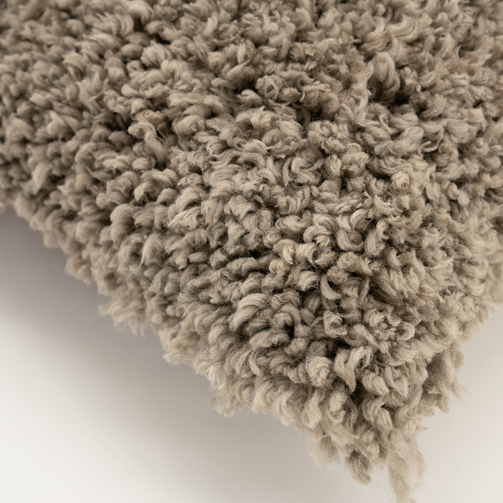 Het “Fez” kussen in taupe geeft je bank, fauteuil of bed direct een warme, knusse uitstraling dankzij de rijke, hoogpolige pool.