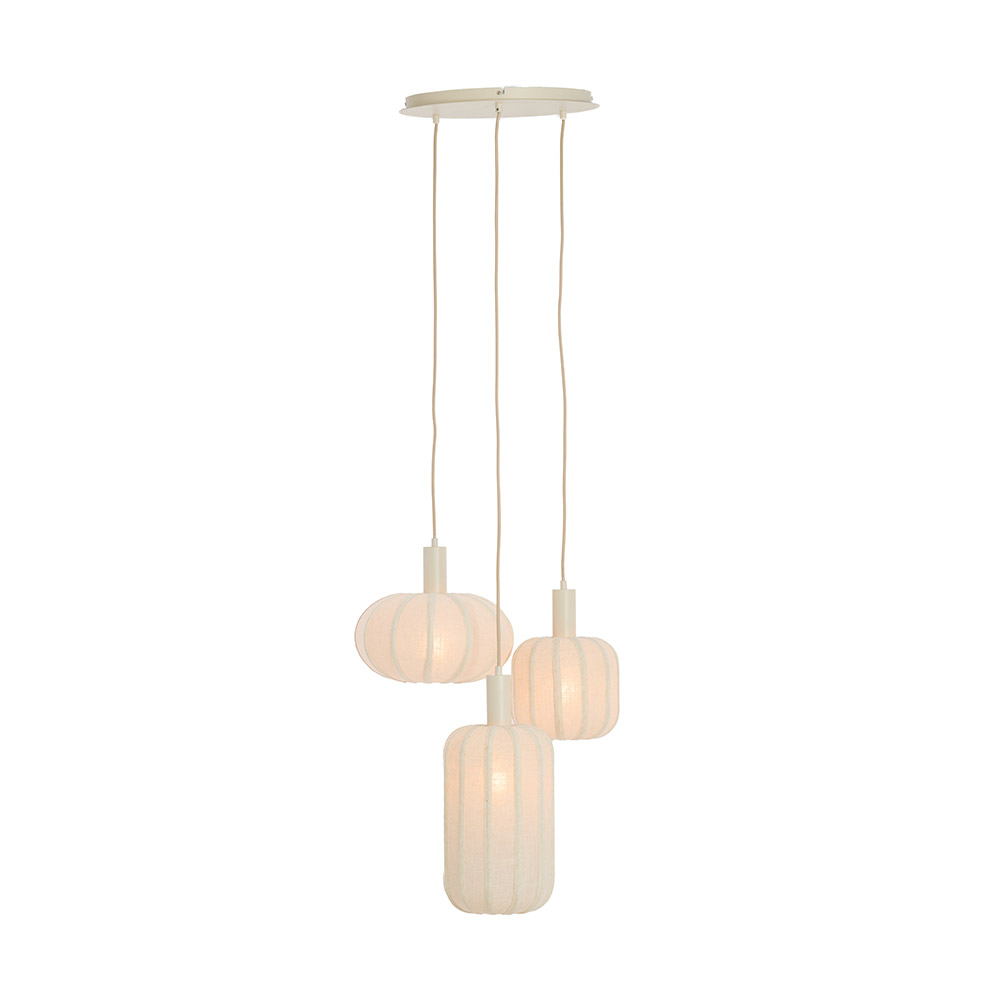 Tufia hanglamp – Linnen crème – 3-lichts – E27