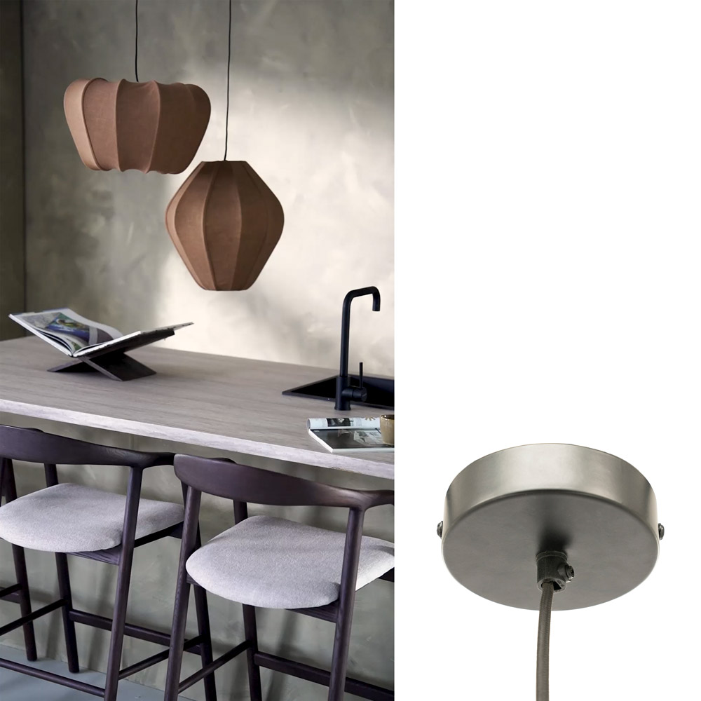 Dankzij het royale formaat komt Sora 2 prachtig tot zijn recht boven een ronde eettafel van circa 100–120 cm, in een zithoek of als statement in een hoge hal. De keuze tussen bruin en gebroken wit maakt het eenvoudig om de lamp af te stemmen op zowel warme als lichte interieurs.