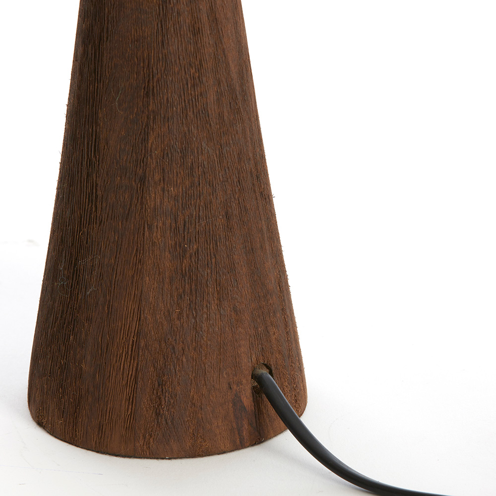 Deze lampvoet heeft een verfijnde en elegante uitstraling met een eigentijds ontwerp. Gemaakt van donker hout, biedt de slanke, conische vorm een modern contrast met de natuurlijke textuur van het materiaal. De houten voet heeft een rijke, warme tint die een luxe uitstraling geeft aan je interieur. Het ontwerp is minimalistisch, met een subtiele ronding aan de bovenkant die overgaat in een stevige voet. Het is de perfecte basis voor een lampenkap, ideaal voor het creëren van een sfeervol accent in je woonkamer, slaapkamer of studeerkamer. De voet is voorzien van een snoer met schakelaar voor extra gebruiksgemak.