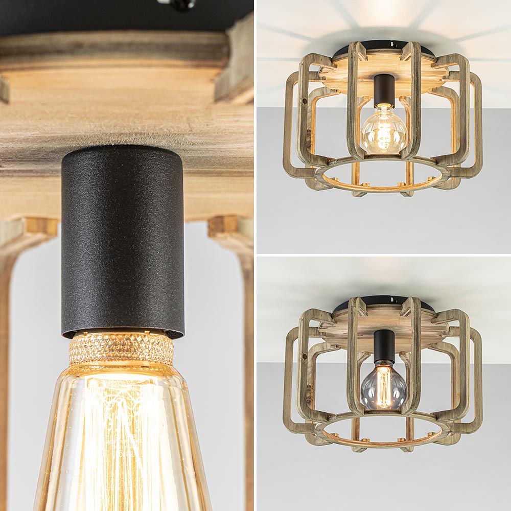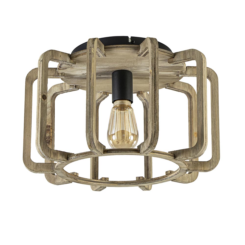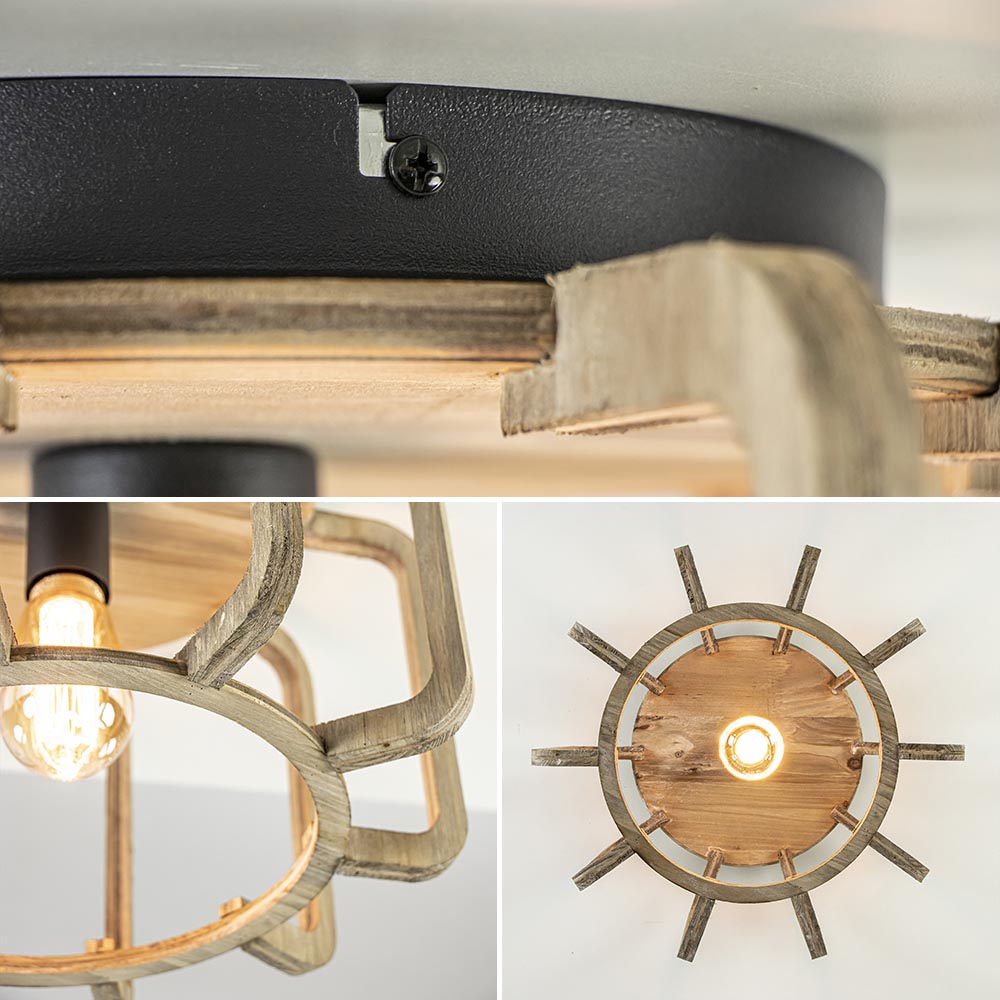 Homepagina / Lampen / Plafondlampen / Landelijke plafondlamp ruw hout mat zwart