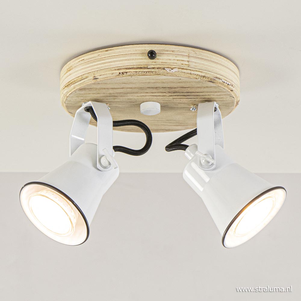Homepagina / Lampen / Opbouwspots / Landelijke plafondspot wit met hout 2-lichts GU10