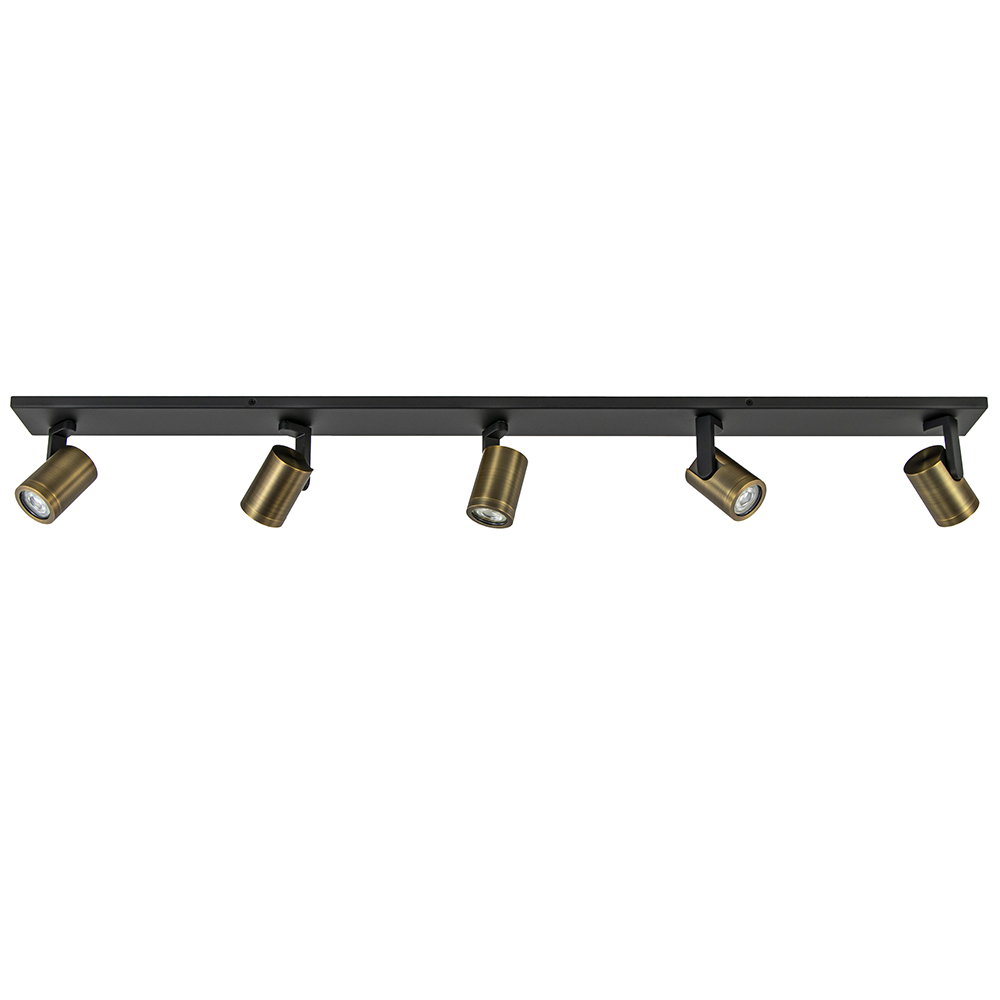 Homepagina / Lampen / Opbouwspots / Lange plafondspot 5-lichts balk zwart met brons