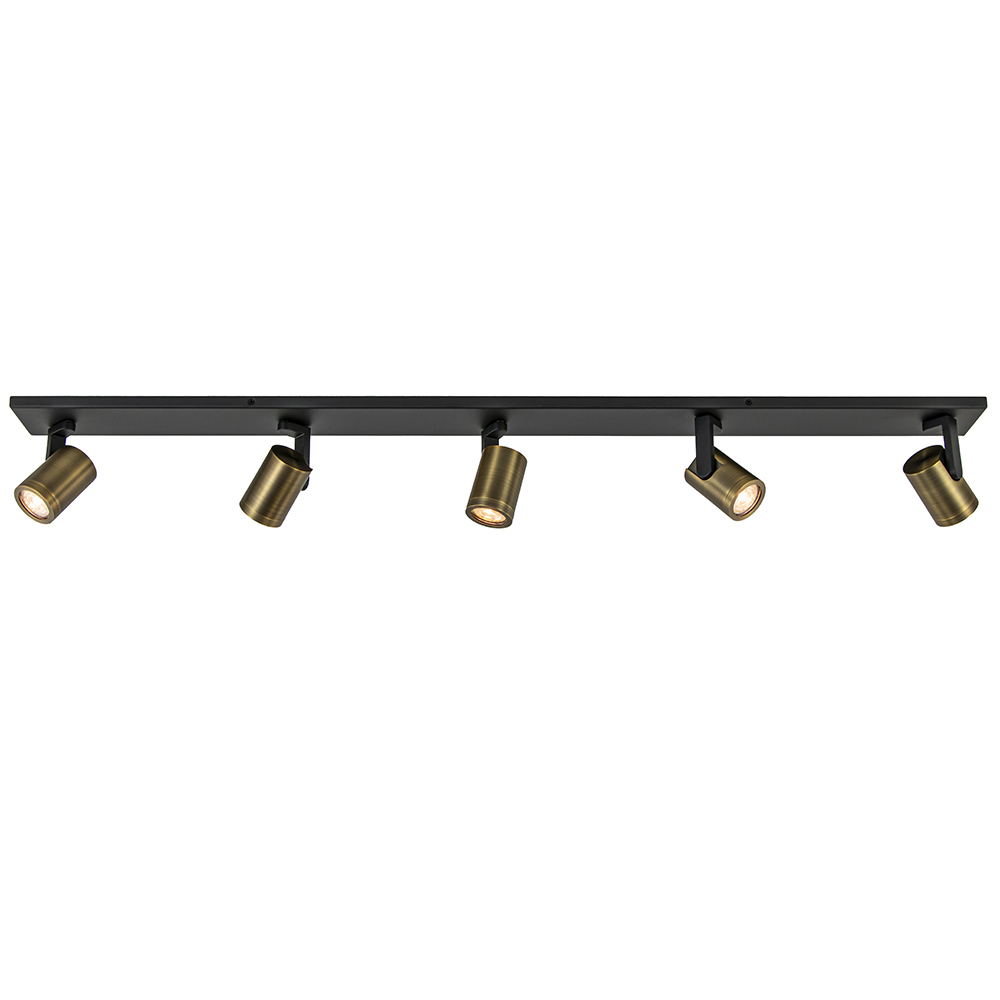– afm: 118×9,5×15 cm – bevestiging: 118×9,5×1,5 cm – kappen: Ø6×8,5 cm – metaal – mat zwart/brons – verstelbaar – exclusief lichtbron (5x GU10) – dimbaar (exclusief)