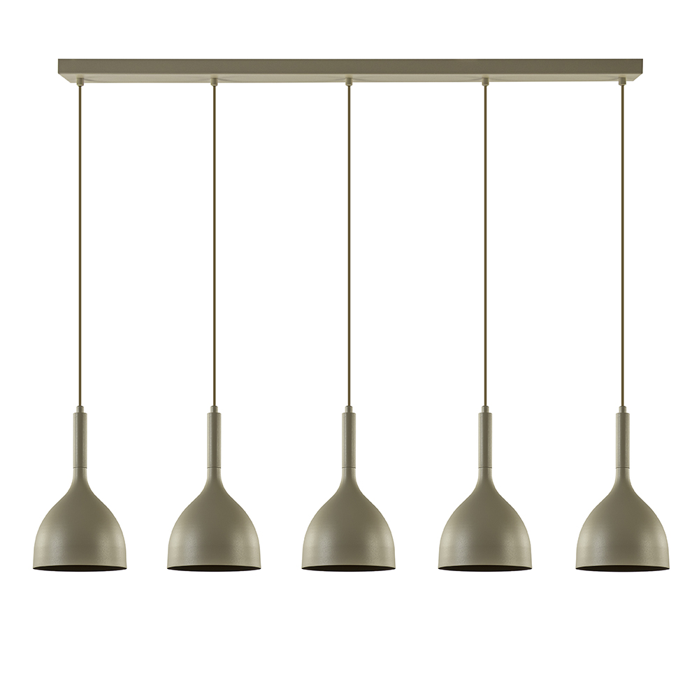 Deze 5-lichts hanglamp is de ideale keuze om uw eettafel op elegante wijze te verlichten. Een modern ontwerp uitgevoerd in de laatste nieuwe trendy kleur beige. De vijf afzonderlijke kappen zijn strategisch geplaatst om een evenwichtige en sfeervolle verlichting te bieden.