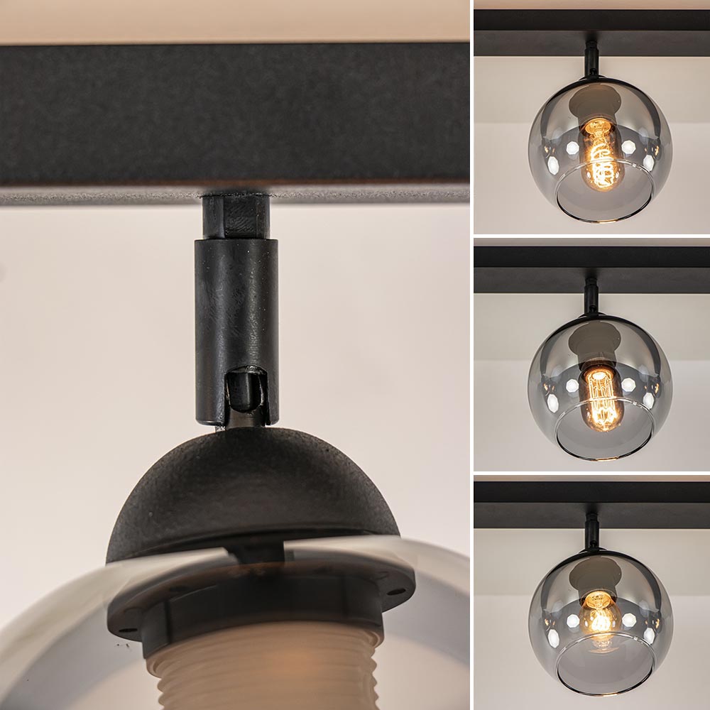 Homepagina / Lampen / Plafondlampen / Langwerpige plafondlamp mat zwart met smoke glazen bollen