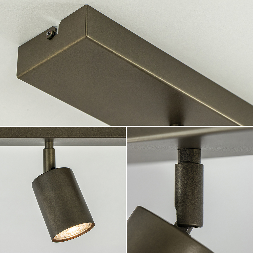 – afm: 80x8x16 cm – bevestiging: 80x8x3 cm – spots: Ø5,5×7,5 cm – verstelbaar – metaal – titanium – exclusief lichtbron (3x GU10) – dimbaar (exclusief)