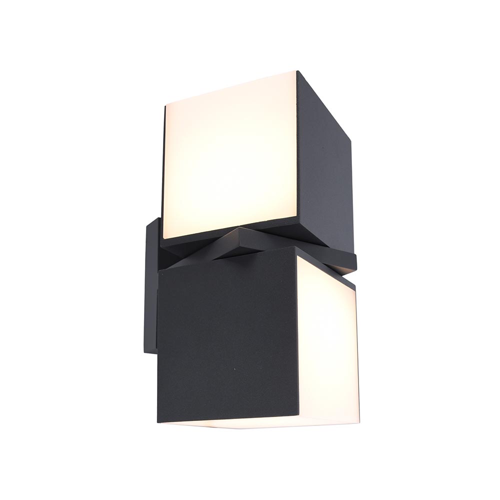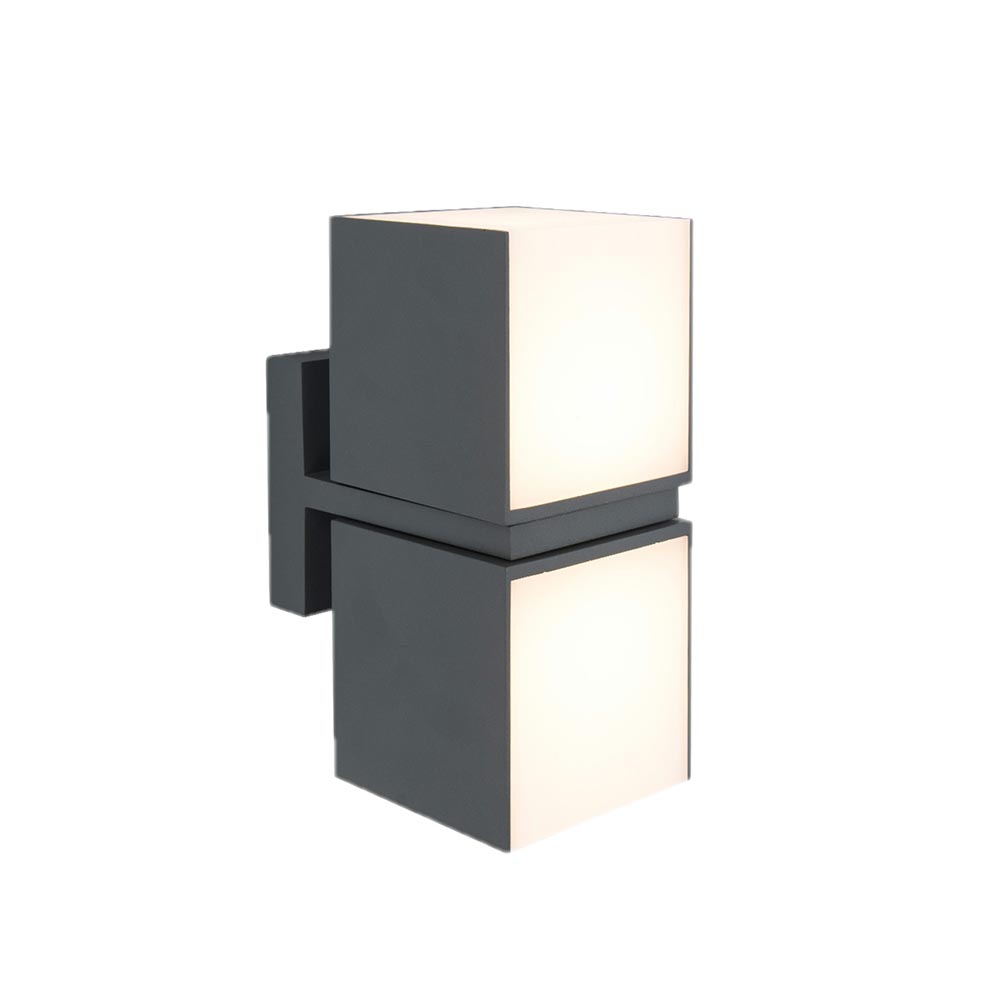 Modern en veelzijdig. Wandverlichting die zowel horizontaal als verticaal geplaatst kan worden. Tevens zijn ook de kubussen los van elkaar 350 graden te draaien. Hiermee kunt u gemakkelijk zelf de sfeer en de lichtverspreidingl bepalen. Deze donker grijze LED buitenlamp is een echte eye-catcher door zijn moderne uitstraling. Doordat de behuizing helemaal dicht is, is de buitenlamp IP54 goedgekeurd.
