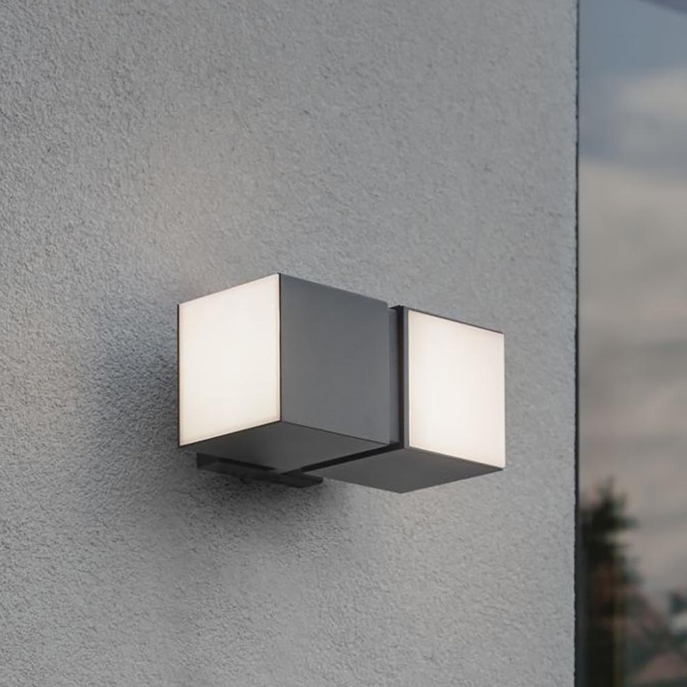 Homepagina / Lampen / Buitenlampen / LED buitenlamp dubbele kubus draaibaar grijs IP54
