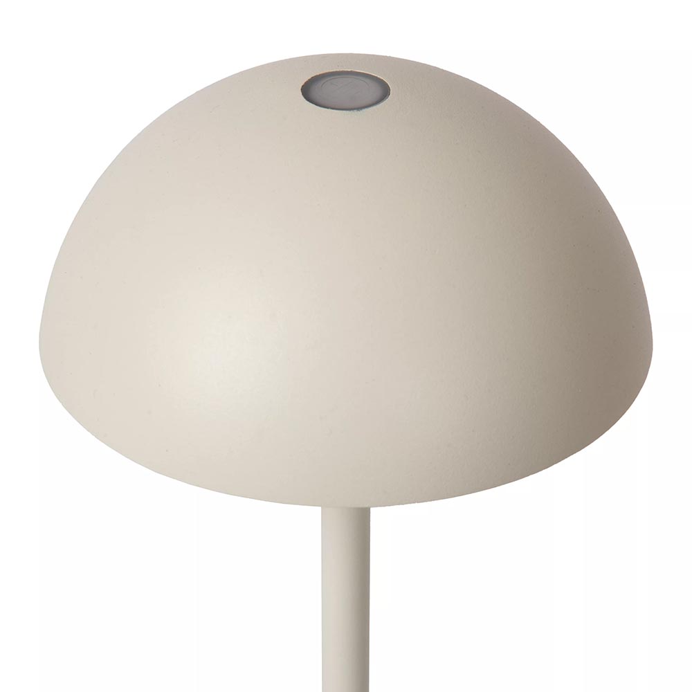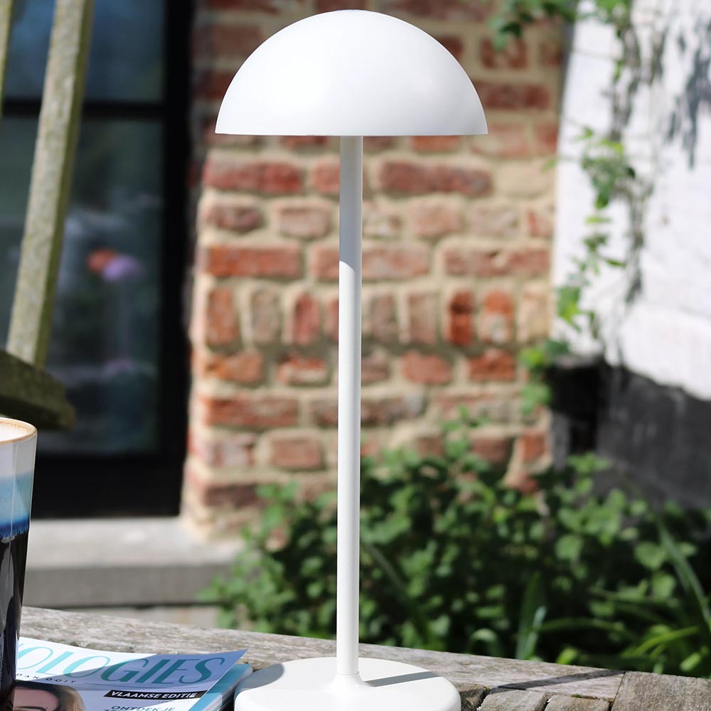 Deze kleine tafellamp is een echte sfeermaker. Doordat de tafellamp op een oplaadbare accu werkt is deze gemakkelijk overal te plaatsen. Deze leuke tafellamp is IP54 goedgekeurd waardoor hij ook buiten kan worden neergezet. Ideaal voor op het balkon of in de tuin. In de ronde kap zit LED verlichting die gemakkelijk te dimmen is met de dimmer op de kap. Deze tafellamp komt in verschillende kleuren.